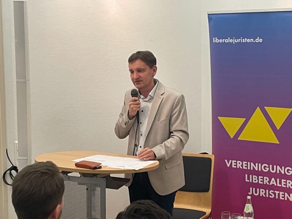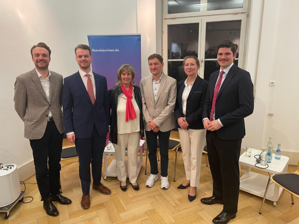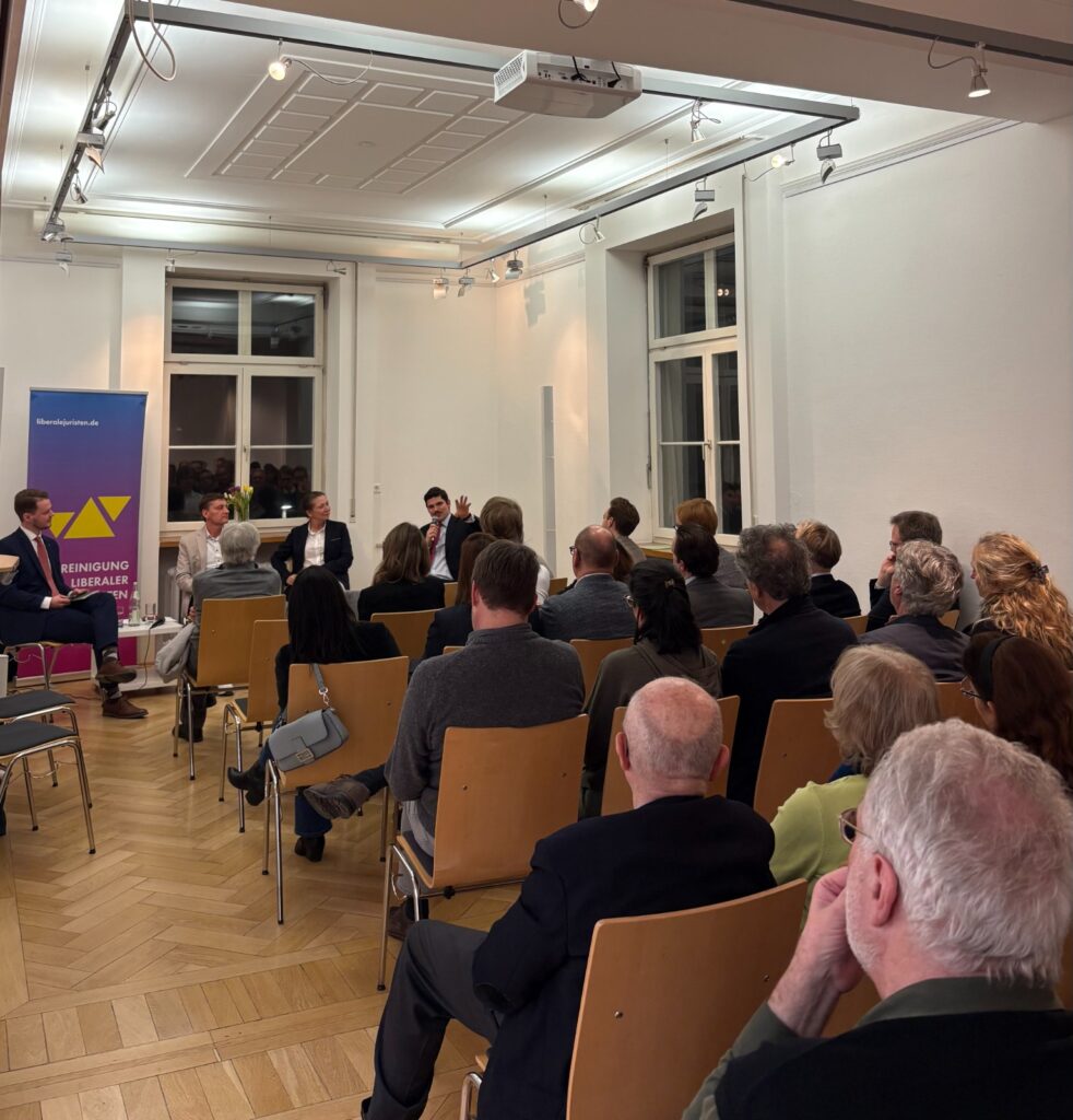 Am 6.2.2026 richteten die Vereinigungen Liberaler Juristen auf Bundes- und Landesebene in Tübingen eine Podiumsdiskussion aus, die sich dem Themenkreis Meinungsfreiheit und Strafverfolgung von Hassrede im Netz widmete. Mit dabei waren Thomas Offenloch, Richter des Bundesverfassungsgerichts, die stellvertretende Vorsitzende und innenpolitische Sprecherin der FDP/DVP-Fraktion im Landtag von Baden-Württemberg, Julia Goll MdL, sowie Rechtsanwalt Dr. Theodor Lammich, LL.M. Die Diskussion moderierte Simon Schlicksupp.